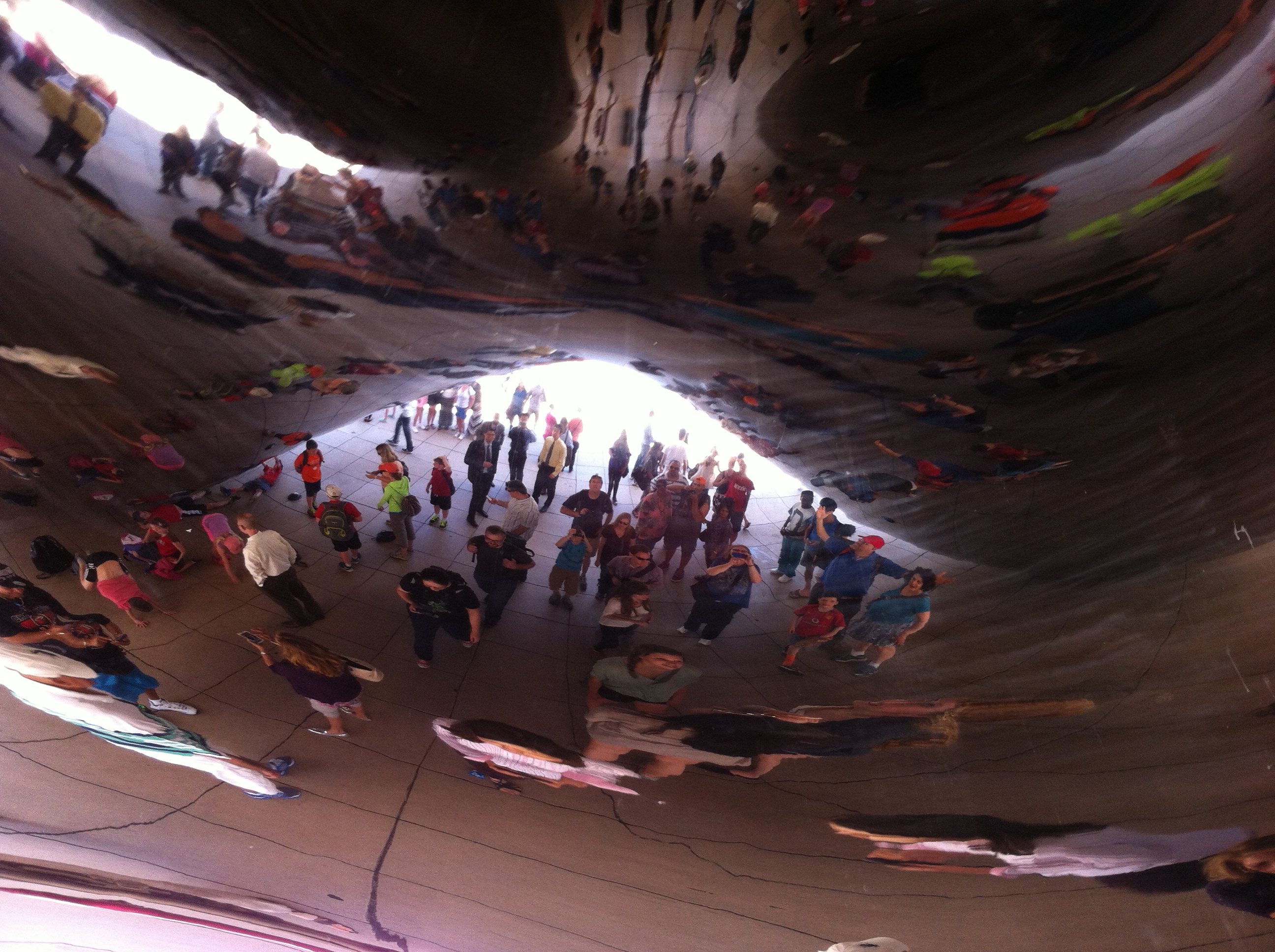 Recently, my good friend Lori visited Chicago’s famous “Cloud Gate” sculpture,  affectionately known as “The Bean” by locals. Designed by Anish Kapoor, this bulging, looming, delightful public artwork reflects on levels. Its mirror finish reflects the buildings, plaza, and sky around it. It reflects the crowds of people looking at it. In turn, its viewers reflect upon it and upon themselves.